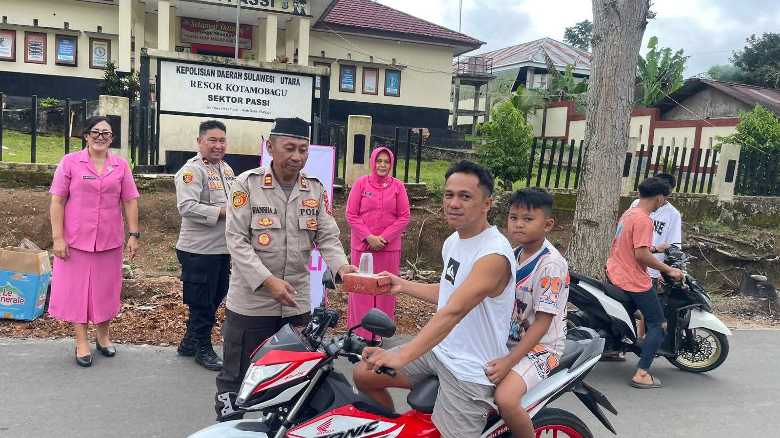 BOLMONG – Nuansa penuh hikmah menyelimuti wilayah hukum Polsek Passi, Polres Kotamobagu, pada pekan ini. Di bawah komando Kapolsek IPTU Rahmad Wansha Abdul Fatah Abarang, jajaran personel Polsek Passi didampingi pengurus Bhayangkari turun ke jalan untuk menggelar aksi sosial pembagian takjil kepada masyarakat dan pengendara yang melintas.