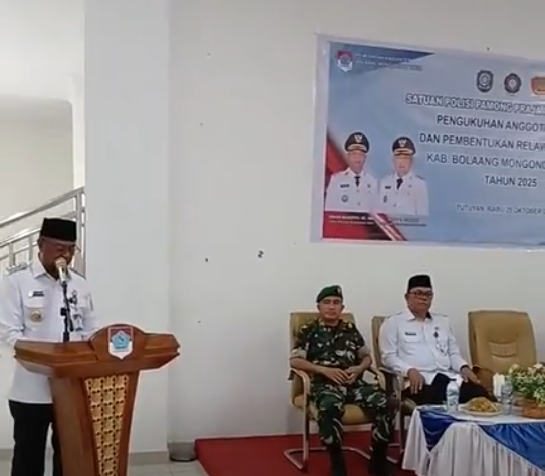 TUTUYAN – Puluhan anggota Satuan Perlindungan Masyarakat (Satlinmas) dan Relawan Pemadam Kebakaran (Damkar) se- Kabupaten Bolaang Mongondow Timur (Boltim), secara resmi dikukuhkan, bertempat di Kantor Bupati Boltim, Rabu (29/10/2025).