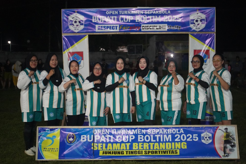 Menariknya, Tim sepak bola TP-PKK Boltim diperkuat langsung Rosita Manoppo Pobela, tak lain istri tercinta Bupati Oskar Manoppo.