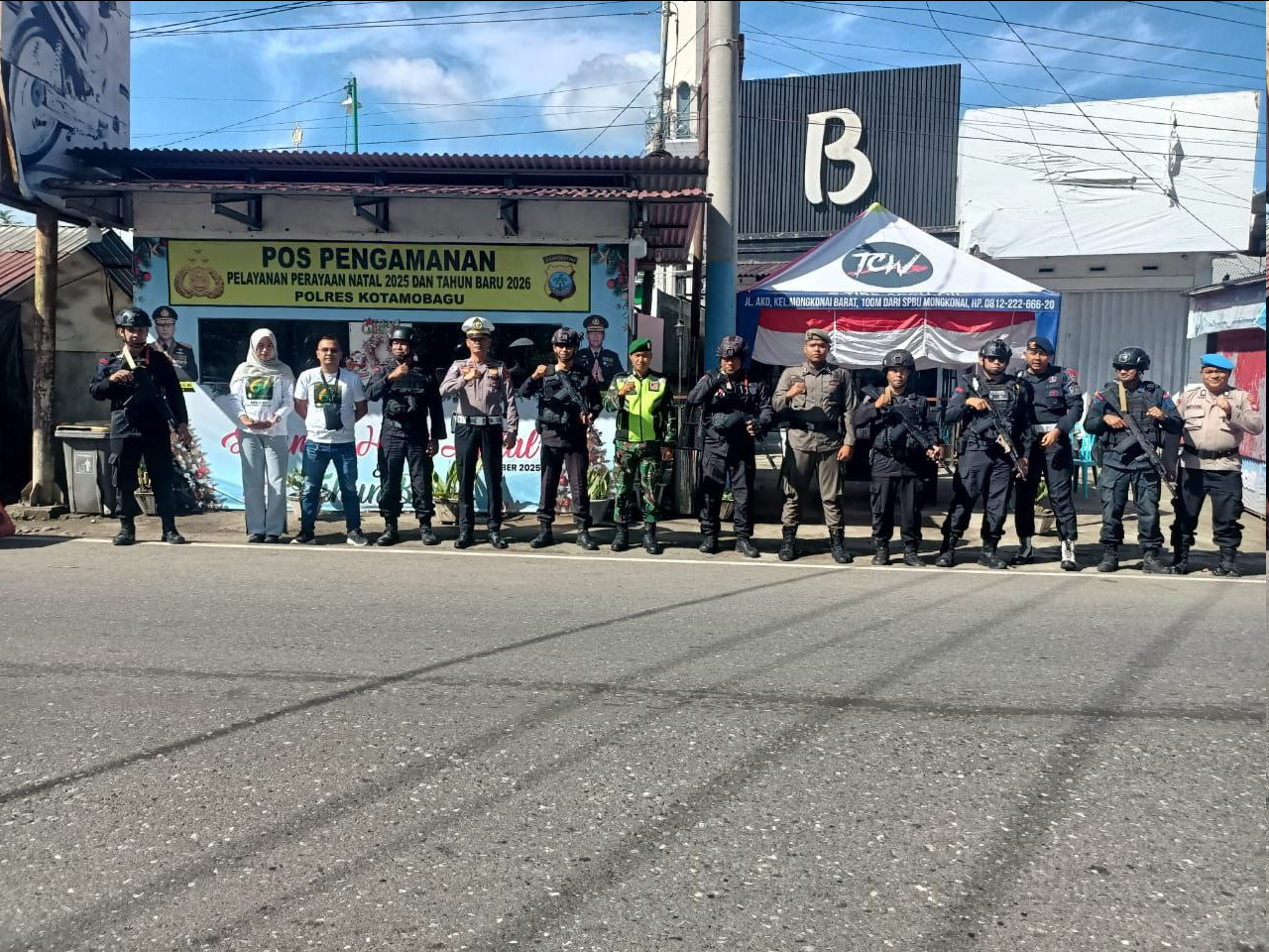KOTAMOBAGU — Dalam rangka memberikan rasa aman dan nyaman kepada masyarakat selama perayaan Natal 2025 dan Tahun Baru 2026 (NATARU), Babinsa jajaran Koramil 1303-02/Passi Serda Rio M. Josephus turut ambil bagian dalam kegiatan pengamanan terpadu di Pos Pengamanan (Pos Pam) Mongkonai Barat Kecamatan Kotamobagu Barat Kota Kotamobagu, Selasa (30/12/2025).