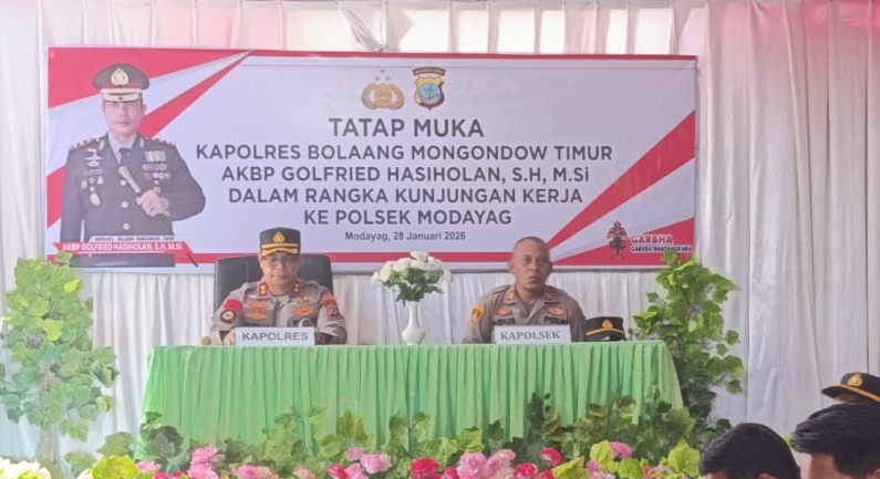 MODAYAG – Suasana hangat menyelimuti Markas Kepolisian Sektor (Polsek) Modayag pada Rabu (28/1/2026). Kapolres Bolaang Mongondow Timur (Boltim), AKBP Golfried Hasiholan Pakpahan, S.H., M.Si., melakukan kunjungan kerja spesial untuk bertatap muka langsung dengan personel dan keluarga besar Bhayangkari.